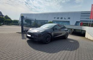 TESLA Model Y Performance in schwarz, mit schwarzer Innenausstattung